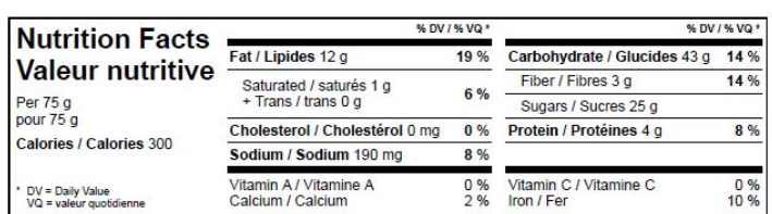Organic spelt flour, organic oats, organic evaporated cane juice, organic raisins, sunflower oil, organic tofu, organic soymilk, organic molasses, baking soda, cinnamon, soy lecithin, sea salt.